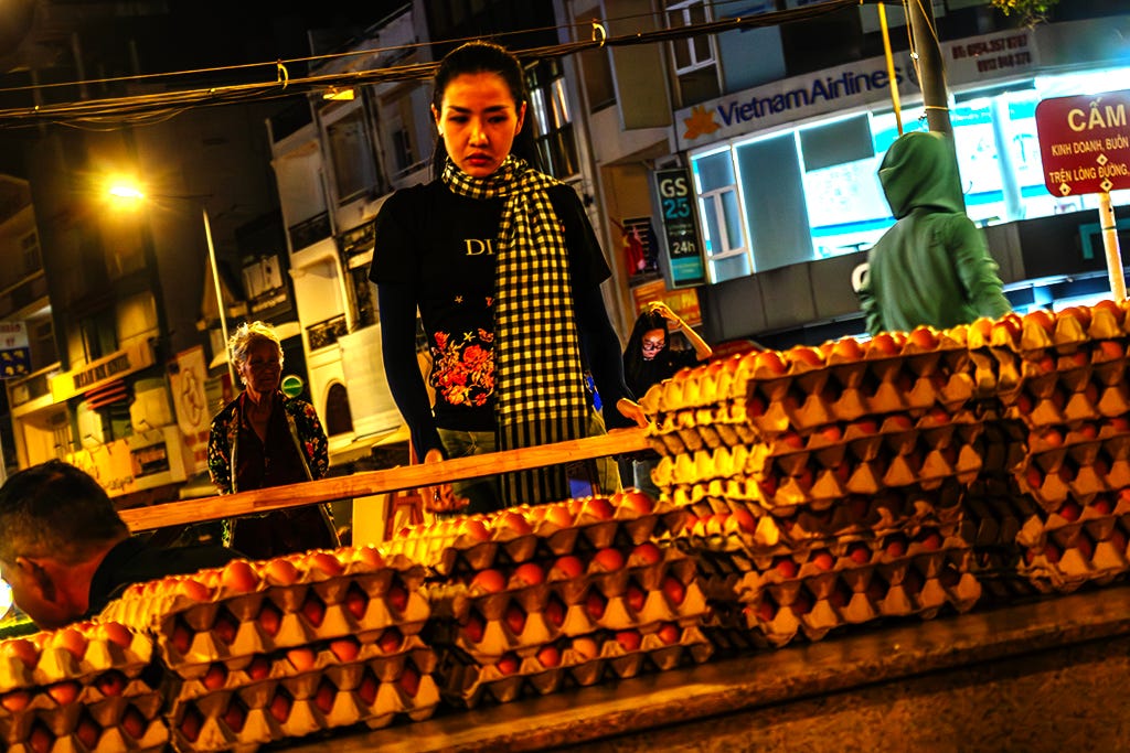 This diatribe was triggered by another lukewarm cup of coffee at Ông Già, as served by a tatted up young barista with a deadened face. Between 4 and 5AM, all patrons were no less zombielike. Each devoured a phone with soulless eyes. For an hour, I sat among corpses. One screen struck young man with half his hair dyed blonde, a tiny pony tail and at least one earring was perpendicular. I’ve seen charred bodies more toned and virile at Pompeii. Unwiped tables glistened forever. Instead of complaining, I left a one star review at Google Maps. Eight out of nine other reviewers, all Vietnamese, also gave it one star. One granted it two. Though societal collapse shows up mostly in trivial, even petty, details, they add up to a grand disaster. Don’t you tell me we’re supposed to live like this.